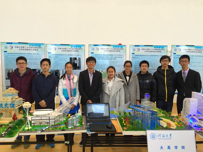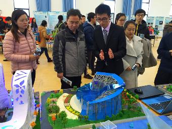 闭幕式在上午九点准时开始,各个学院都拿出了科技节期间最优秀的作品进行展示。有大坝模型、起重机模型、飞行器模型等等,多样的形式吸引了来自不同公司、不同年级的员工前来参观。williamhill英国官网科协展示了第五届标新立异地标设计大赛的获奖模型和williamhill英国官网近年来在各项科技竞赛中的获奖成果,形式丰富,构思奇特,给在场的师生们带来了不一样的体验。williamhill英国官网科协的讲解员们精心准备,为前来参观的师生进行热情周到的讲解,现场气氛活跃。标新立异模型的代表作品“水木印象”借鉴了上海世博会中国馆“东方之冠”的结构,力度美与结构美完美结合,主楼大胆创新地使用了特殊木材,结构层次清新,令人印象深刻;周围景观采用园林设计,体现williamhill校徽的环形河流十分醒目,展现了代代传承的河海文化。而“献‘璃’河海”则采用高科技玻璃为主体建筑材料,较高的空间利用率和节能环保的设计理念体现着河海的工科学术气息;周围环境的青山绿水交相呼应,象征着河海朝气蓬勃、奋发图强的时代精神。科学和人文、技术和自然的结合在这里体现得淋漓尽致。