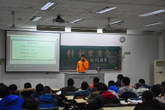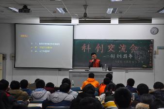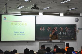 首先上台的是李泓辰学长,通过他对自身创训经验的介绍,让低年级的同学们清楚了解到创训流程主要有三步:⑴项目申报,包括联系导师、选定课题、撰写申请书、参与定级答辩等;⑵项目进行。创训小组成员需阅读文献并进行试验,定期交流总结;⑶提交成果,撰写结题论文。接着朱征学长主要向同学们介绍了创训过程中的一些小技巧,比如通过导师的基金项目来确定研究方向、模仿学长们的优秀申请书来改善自己的申请书、选择较为有利的申报单位、答辩时着正装且PPT简明扼要等,让正为申报项目苦恼的二年级同学深感受益。最后廖智凌学长着重向同学们分析了创训活动中可能遇到的困难:占用时间长、超越自身知识水平、易半途而废、虎头蛇尾等。在逐一分析这些困难的同时,他也不忘告诫同学们要注重团队合作,负责人要处理好与组员之间的关系,组员要配合安排,团队应分工明确,责任到人,注意财务分析记录等。