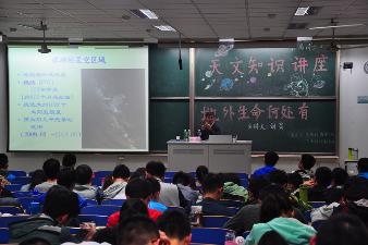 刘教授首先向我们阐明了科学家探索地外生命的思路。他认为,探索地外生命是多学科综合型课题,不能单单只从一个角度去考虑。从地球上的生命到地球型生命,刘教授分析了地球型生命的基本特征及其所需的生存条件。地球40多亿年的的演化过程,有缓变也有突变,其中许多都与天文背景条件——地球环境的变化有关。接下来,刘教授重点讲解了生命对地球(和行星)天文环境的要求,包括液态水,四季变化和气候带,潮汐运动,生命必需的物质资源,以及足够长的相对稳定时期,并强调了月球这样足够大的卫星的重要性。通过白垩纪的恐龙灭绝事件,刘炎教授介绍了由阿尔弗雷特父子提出、从天文学角度解释的小行星撞击理论以及可能由这颗小行星形成的希克苏鲁伯陨石坑。介绍了生命存在的条件后,刘教授详细分析了地球存在的各种优势因素,如具有固态岩质表面以及大量液态水,还有生命生存和繁衍的基本环境。同时,地球位于太阳系的宜居带,有着适宜的自然环境。最后,教授简要介绍了生命对太阳(和恒星)的要求,和银河系中文明世界数量的估算,以及现阶段对地外生命的探索情况。其中我国为探索地外生命做出了积极而又卓越的贡献,获得了国际社会的高度评价。