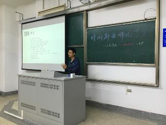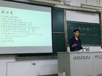 接下来是龚正同学发言。学长从小处入手,以水工班大三的课业为实例,详细解剖了应该如何规划好学习节奏,告诫在场同学,一定要有预留时间意识,提早开始复习,并保持学习的高效率——“真正成功的人每天能睡够8小时”。