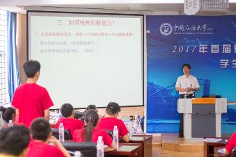 中国石油大学(华东)副董事长刘华东出席开营仪式并致辞。刘董事长介绍了中国石油大学(华东)的办学历程和“三三三”本科教育培养体系,指出四所行业高校有着相似的办学历程,荣誉公司的命名有着特殊含义,承担着育天下英才的共同责任。希望荣誉公司的员工能够以本次交流营为契机,走出校园,通过跨学科、跨界学习,不断接受新知识、新事物,真正有所收获和发展。