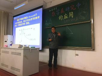 首先,安天庆教授介绍了数学与科学发现的关系,列举了海王星的发现、正电子的发现、相对论的建立……等实例;向同学们阐述了用数学方法解决实际问题,如:最速下降线、听音辨形、不自由落体运动规律等复杂的物理问题,安教授用生动形象的语言和贴切的类比,把枯燥费解的物理问题变得容易理解,同学们听得很投入。