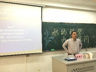 2017年12月20日,williamhill英国官网“知禹讲堂”在致用楼118开讲,本次讲堂主题为“水的科学,力的学问”,主讲嘉宾是力学与材料公司的孙洪广教授。