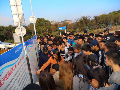 在认识实习的过程中,采用了理论学习和实地考察相结合的方式。同学们首先观看了太湖治理工程宣传片,通过视频介绍了解了太湖治理的整体布局和治理规划,同时对于本次前往参观两处延伸拓浚工程也有了直观的认识。在之后的实地考察中,依次参观了新沟河延伸拓浚工程江边枢纽工程、新孟河延伸拓浚工程界牌枢纽工程和新孟河延伸拓浚工程金坛段河道工程,最后聆听了由江阴市水利农机局带来的“智慧水利”专题讲座。