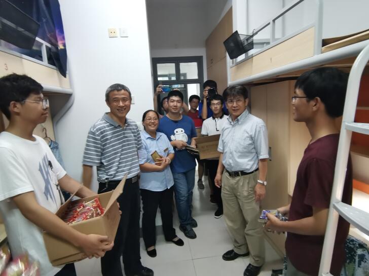 2019年9月12日,在传统节日“中秋节”来临之际,williamhill英国官网朱伟经理、党委李冠华书记和19级辅导员周青老师一起走进了员工宿舍,为军训期间的新同学们送上月饼、贺卡,表达深切的节日问候。