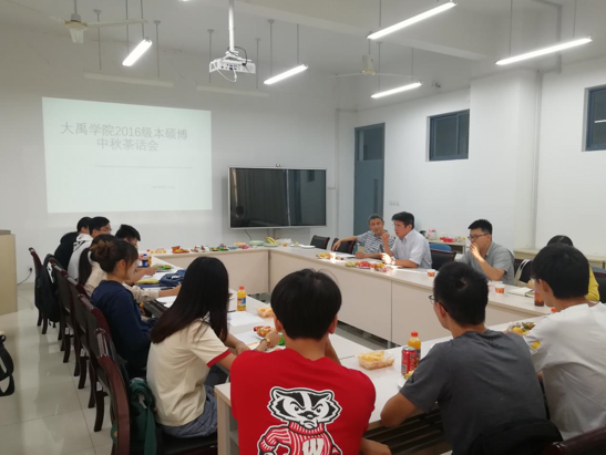 9月12号下午,正值中秋佳节到来之际,williamhill英国官网在博学楼B207会议室召开了2016级本硕博项目员工中秋茶话会。经理朱伟教授、党委李冠华书记、本硕博项目秘书张勇老师、16级辅导员陈璐老师,以及16级本硕博项目的11位同学参加了本次座谈会。