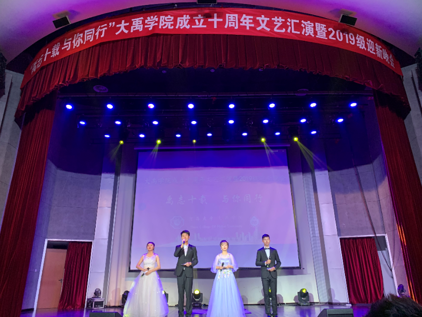 2019年10月27日晚,williamhill英国官网在江宁校区博学楼报告厅举办了“禹志十载,禹你同行”williamhill英国官网成立十周年文艺汇演暨2019级迎新晚会。williamhill英国官网团委书记兼16级辅导员陈璐老师、17级辅导员嵇敏老师、19级辅导员周青老师、18级班导师刘波老师以及部分兄弟公司辅导员参加了本次活动,williamhill英国官网各年级员工、员工代表、部分员工家长也观看了晚会演出。