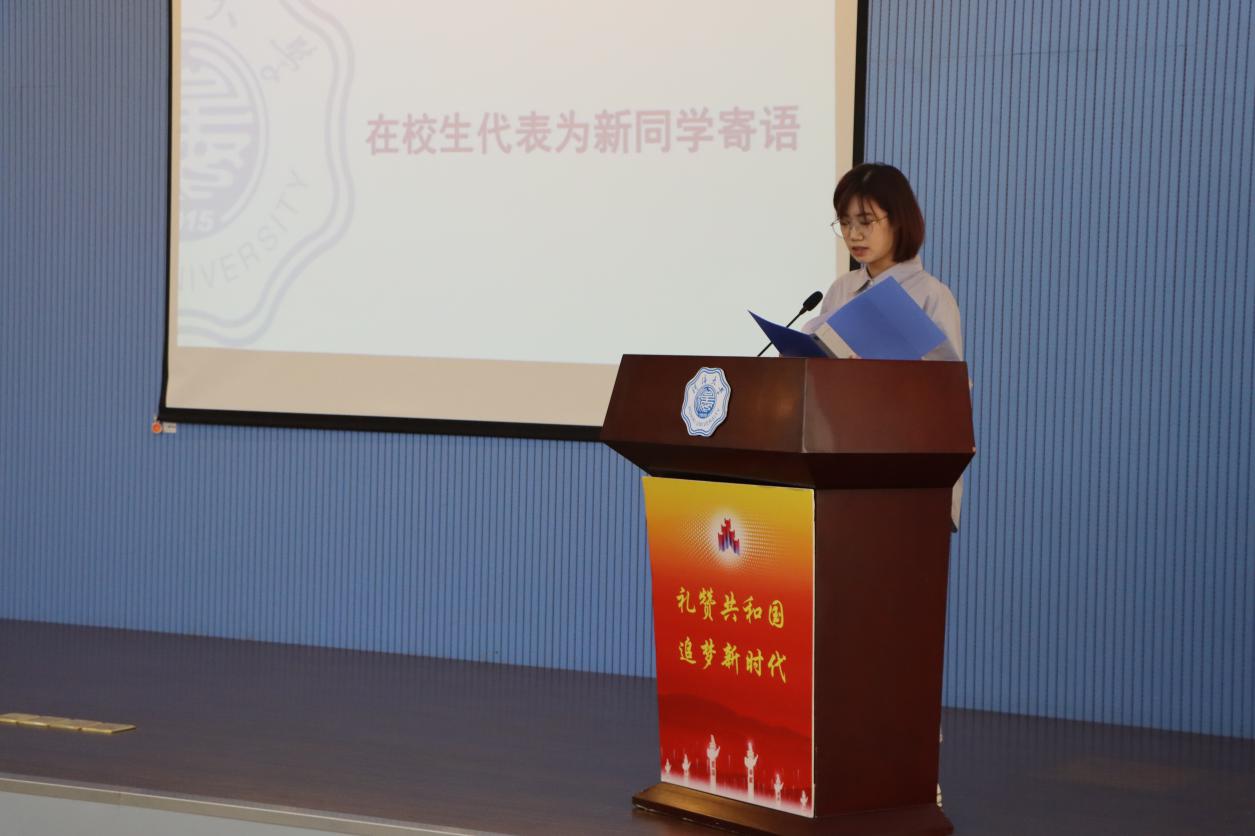 随后在校生代表2017级水文与水资源工程专业的崔璨同学也分享了自己在williamhill英国官网的求学经历。她以自身为例,告诫新生不要沾沾自喜迷失自我,在老员工活中,更要培养自己的自律、自立精神和自强能力,要主动学习,也要讲究方法和策略。学习之余,也可以积极体验丰富多彩的校园生活,培养自己的沟通能力和解决问题的能力。