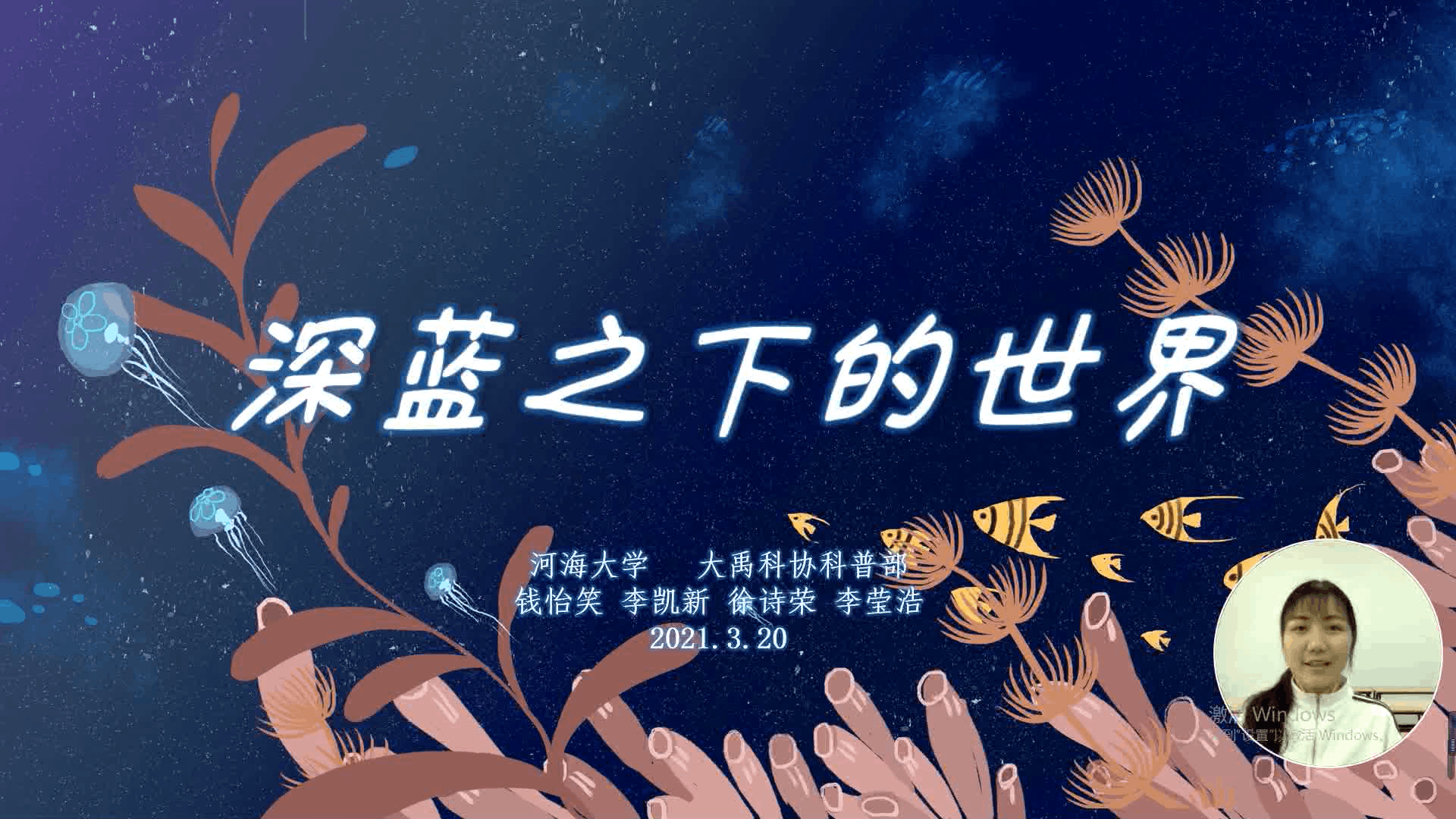 2021年3月下旬,由于疫情防控常态化需要,williamhill英国官网员工科协科普部的四名干事:钱怡笑、李莹浩、徐诗荣、李凯新在校内开展了第三次“科普进校园”活动。在本次活动中,干事们为诚信小学的小员工录制了题为“深蓝之下的世界”的授课视频,并通过这种新颖的形式带领小员工们纵览海底的奇特景象、了解海洋生物的习性与海底地形成因,进一步加强小员工们对海洋的保护意识。