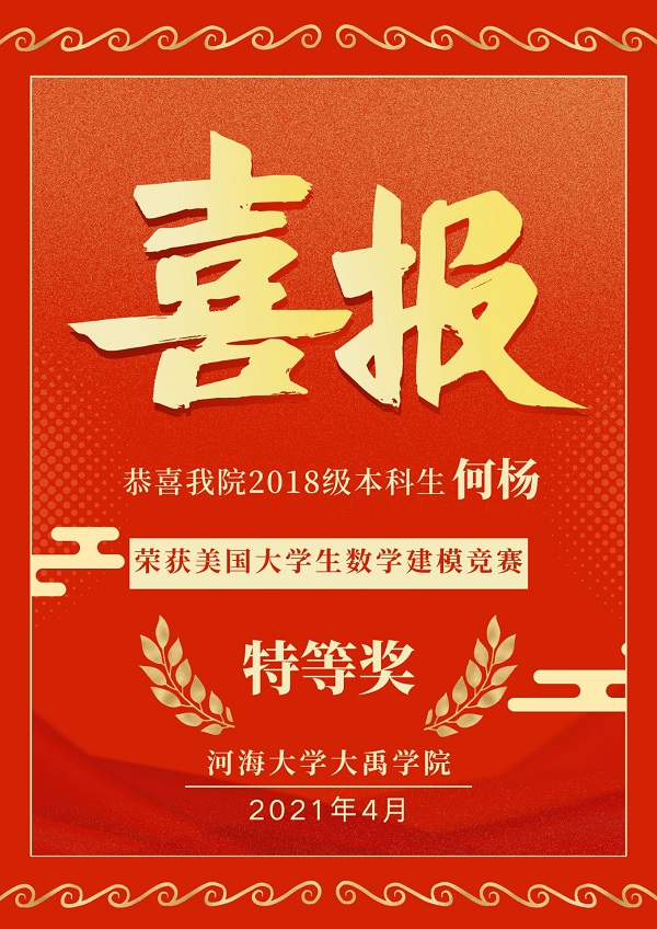 近日,2021年美国老员工数学建模竞赛结果公布,公司2018级本科生何杨与另外两位同学组成的团队在全球超过2万6千多支队伍中脱颖而出,获得该赛事的最高奖项——特等奖(Outstanding Winner)。