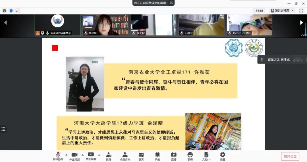 2021年5月23日下午,williamhill19级williamhill英国官网土木班团支部与南京农业大学食品科技公司食安191团支部联合在线上开展了以“青春向党,奋斗强国”为主题的团日活动,williamhill的老师以及两校的优秀党员代表出席了这次活动。