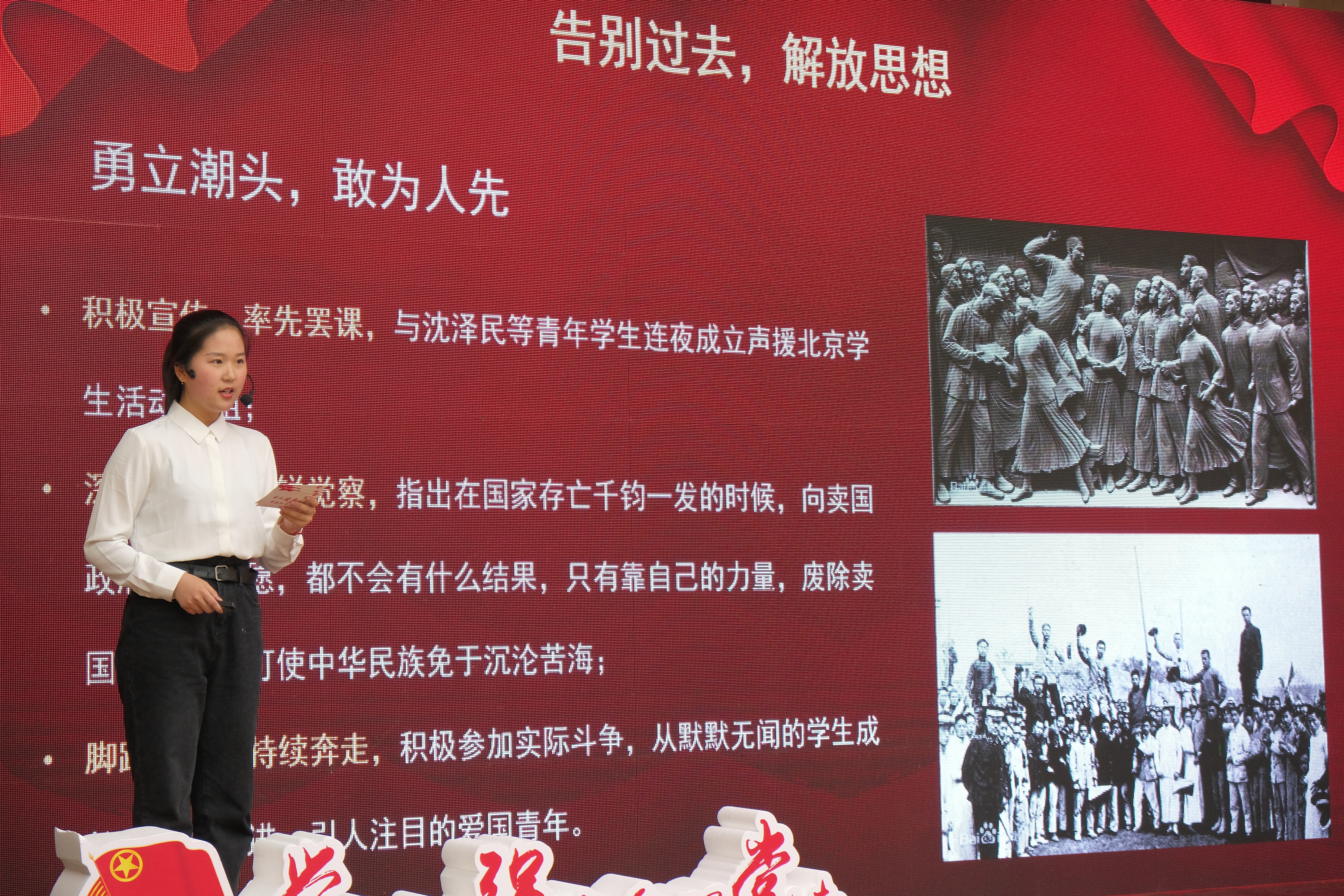 第六组参赛选手环境院刘奕彤以《铭史承志,砥砺前行》为题,讲述了张闻天同志敢为人先、解放思想、明史承志、发扬奋进的故事。