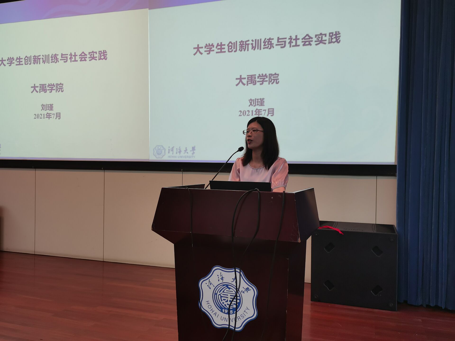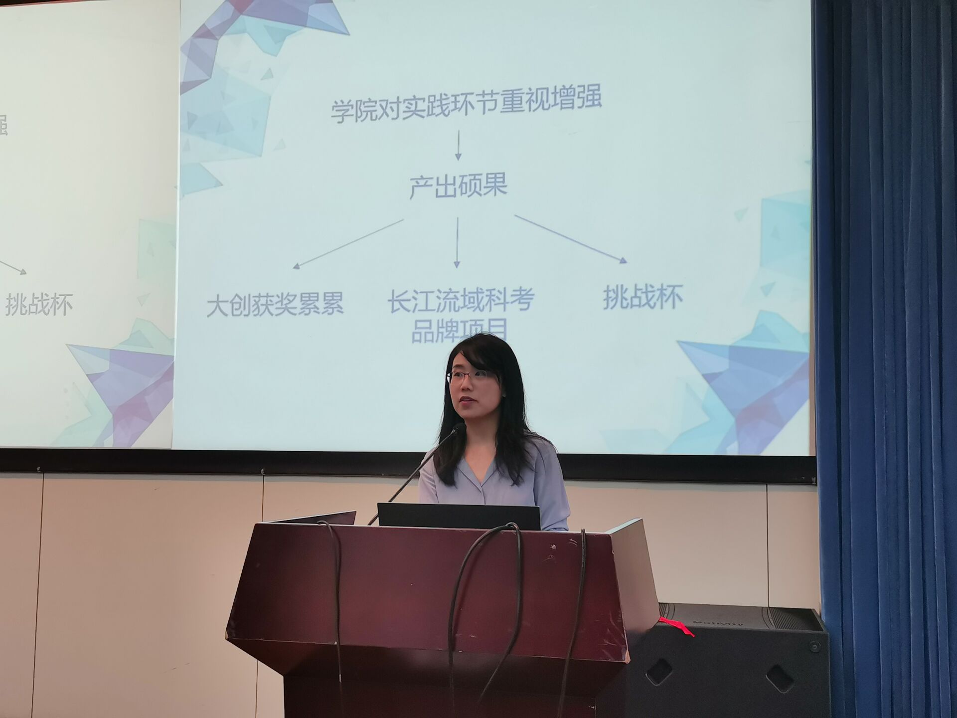 刘经理针对老员工创新创业训练项目和社会实践活动的贯穿培养发表讲话。她指出创新创业训练的结题工作十分考验同学们的功底,而这功底正好可以在社会实践活动中得到锻炼、养成。她还强调,创新创业训练和社会实践活动要注意各年级之间的传承,切实从实践活动中增长本领才干。