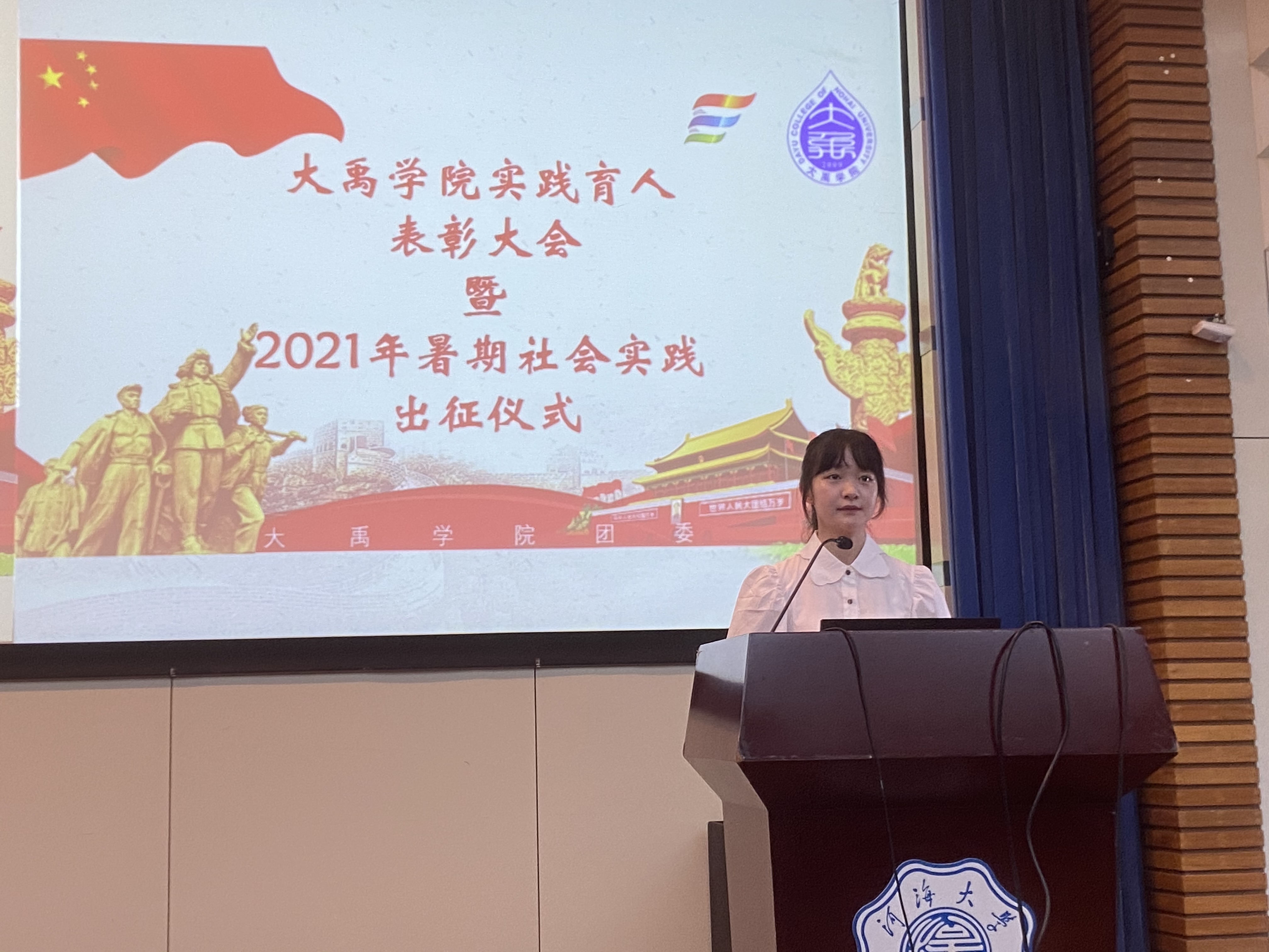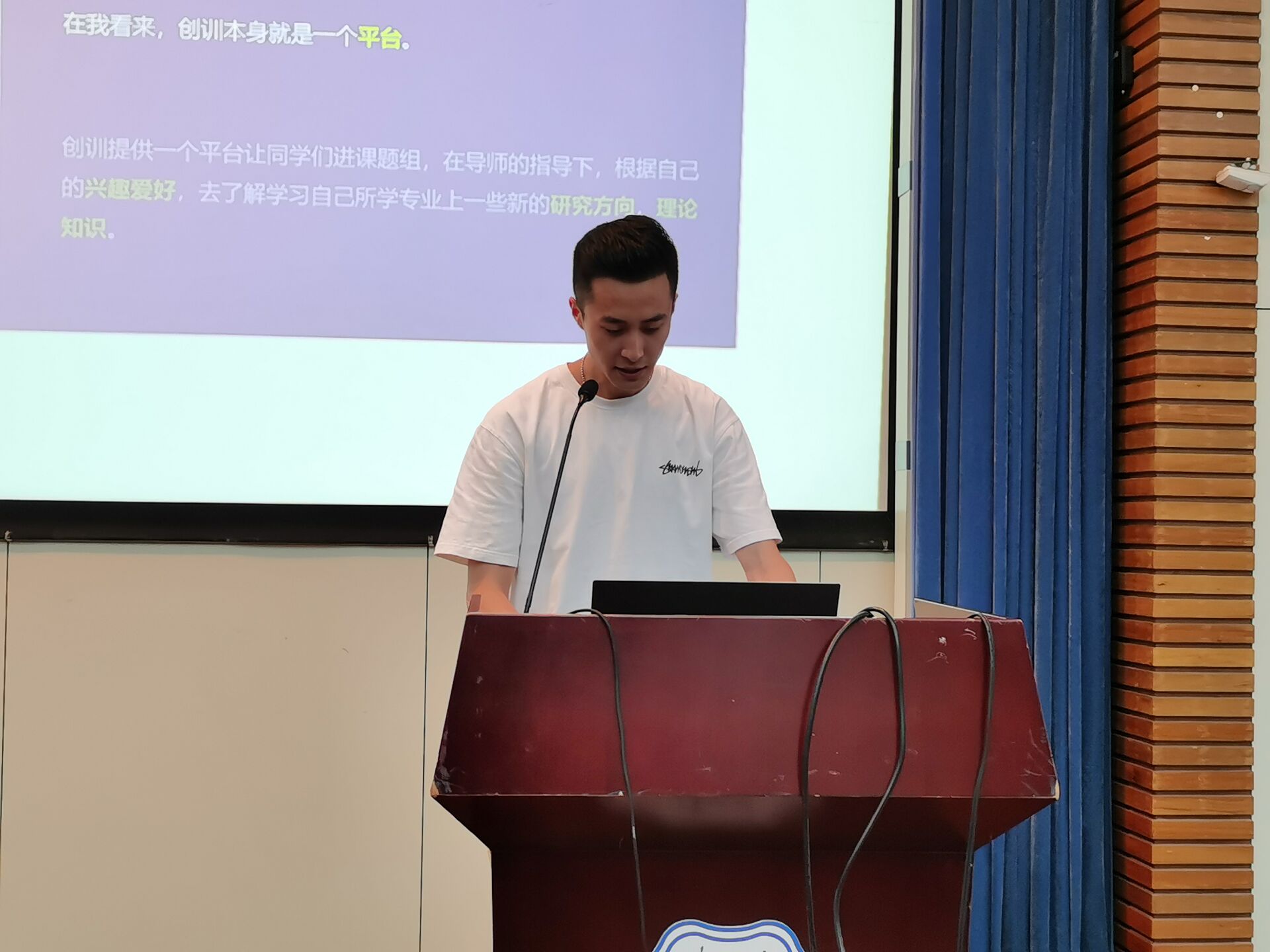 仪式在袁海钰、安东明同学的分享中拉开序幕。两位同学分别从实践经历出发,分享了在队伍组建、立项选择、参与态度等方面遇到的问题及解决的办法。