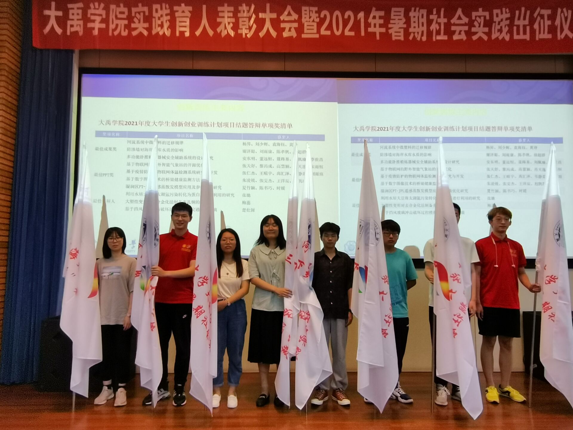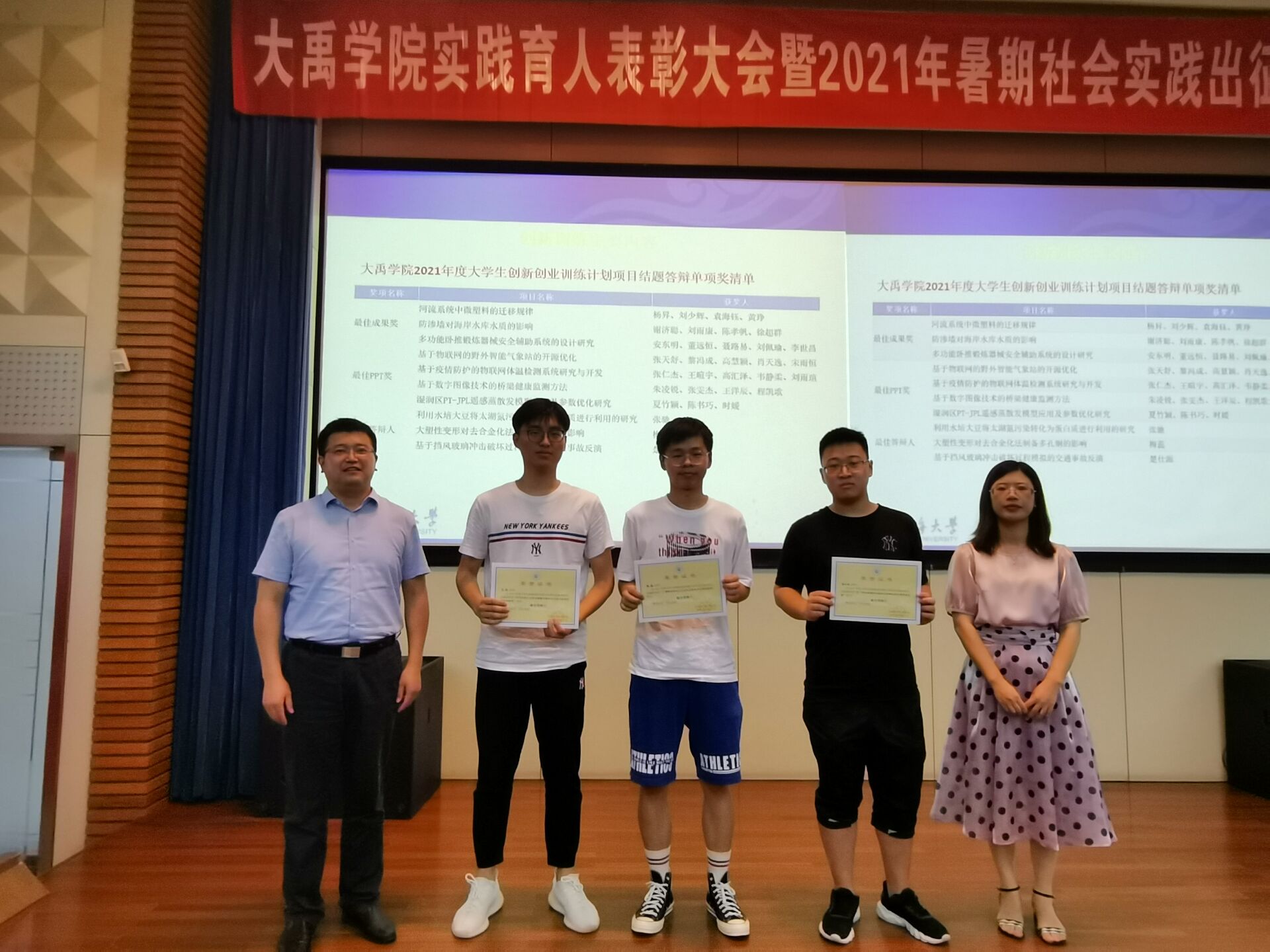 吴书记、刘经理为获奖同学颁发了williamhill英国官网“2021年老员工创新创业训练结题答辩”最佳成果奖,并为各暑假社会实践团队授旗。