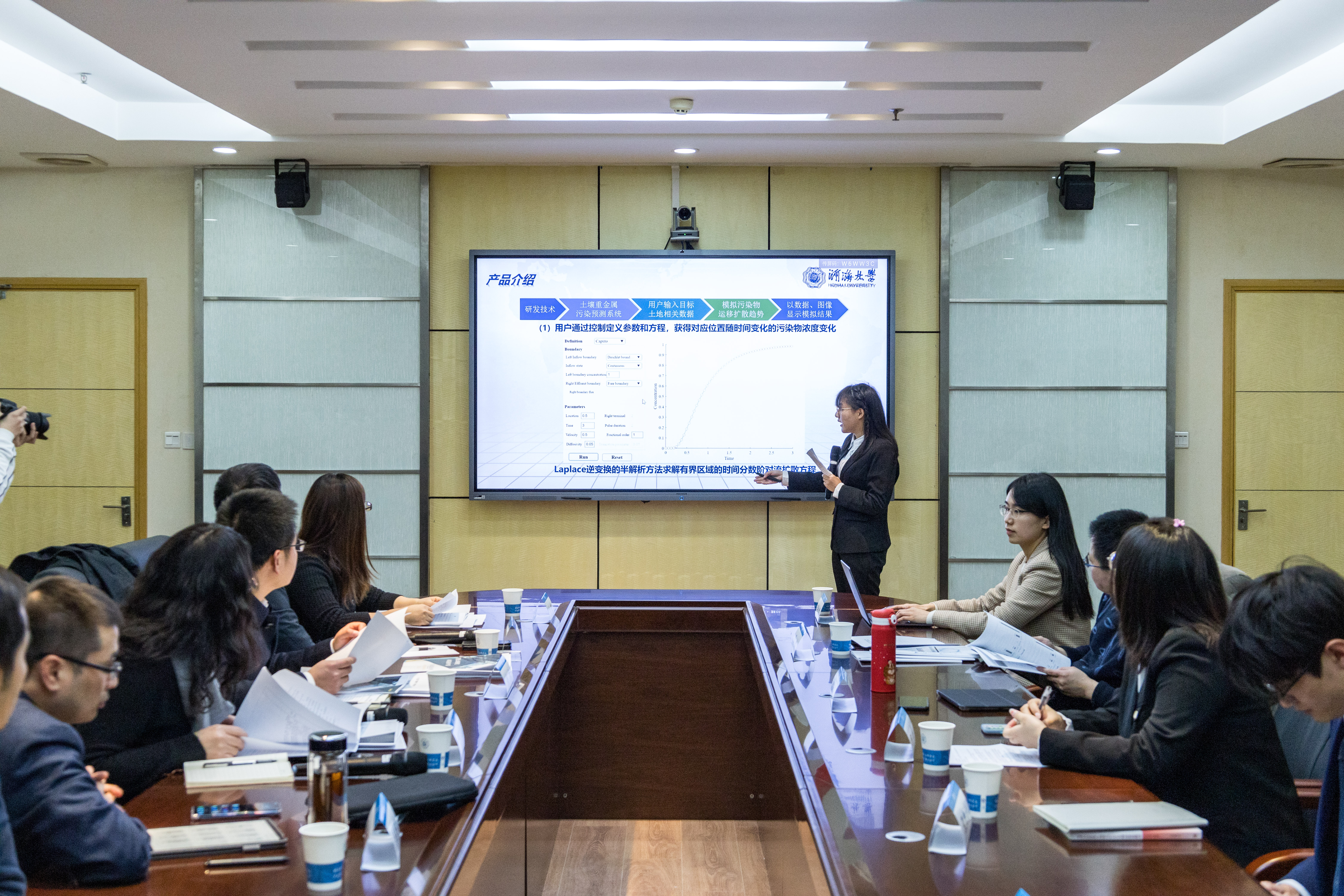 各参赛组汇报人就各组参赛主题、安排、成果等进行详细的汇报。《净湖先锋——一种可精准研判湖泊藻类的监测和预警系统》项目的张凯文同学、《基于“双碳目标”与“两山理论”的污泥资源化及红色乡村水环境治理的公益践行》项目的陈辰同学、《土壤重金属迁移转化过程模拟研究》项目的蒋娅婷同学、《基于数字孪生技术的南京明城墙安全预警模型》项目的邱森烨同学分别进行了汇报。