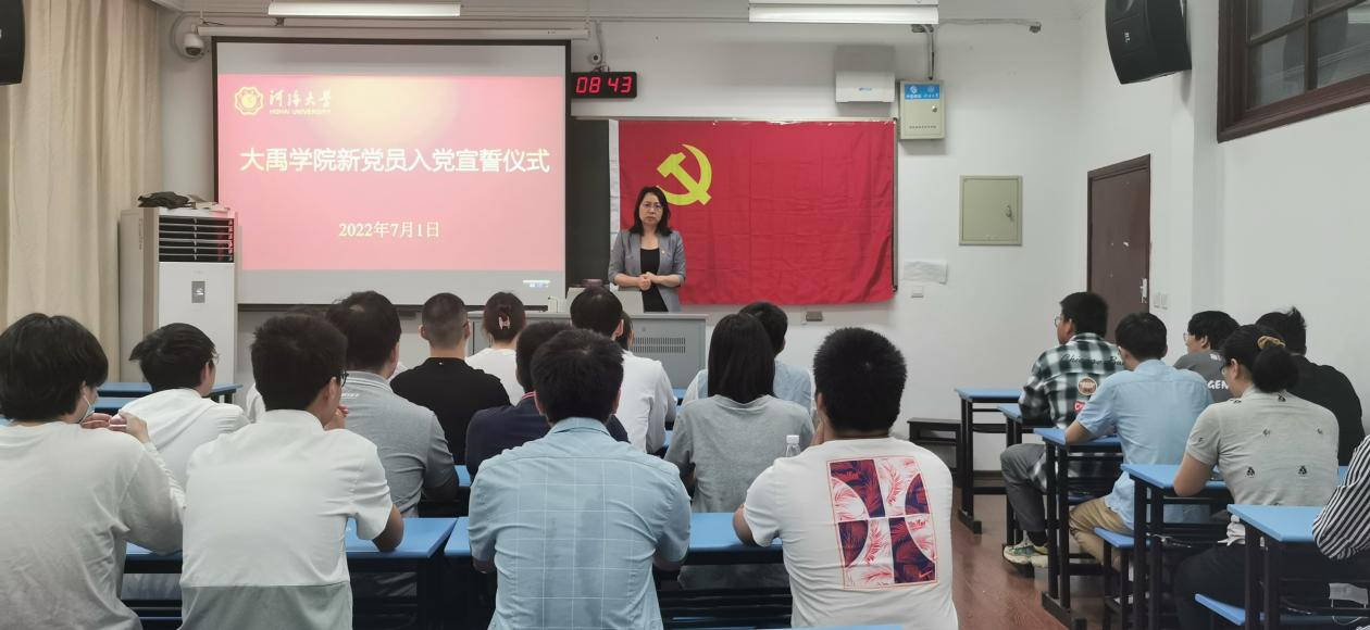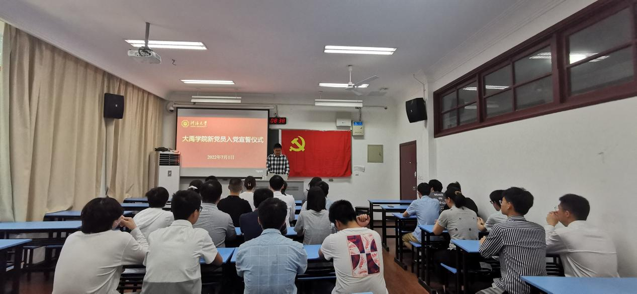 4位新党员代表依次发言,19级大禹港航班钱竹隐表示要不忘初心,牢记使命,将入党誓词的内涵融入到学习生活的各个方面,不断向优秀党员标准迈进,坚定地扛起水子子的使命,为国家的水利事业添砖加瓦。19级大禹土木班徐秦分享了党史学习体会和入党的心路历程,表示要认真践行习近平总书记对当代青年的殷殷期许,牢记党的教诲,立志民族复兴,在土木水利行业奋力拼搏,为民生福祉贡献自己的力量。20级大禹港航班夏旭彤表示要加强理论学习和实践锻炼,不断提升党性修养,以江河安澜的济世情怀,向海而行的强国梦想,在实现民族复兴的赛道上奋勇争先。20级大禹工程力学班王思琪表示要不断提高理论水平和政治素养,与其他班委、党员一起为加强班级学风建设共同出力,发挥好同学与老师之间的桥梁纽带作用,与班级同学共同成长进步,争取早日成为一名优秀共产党员。