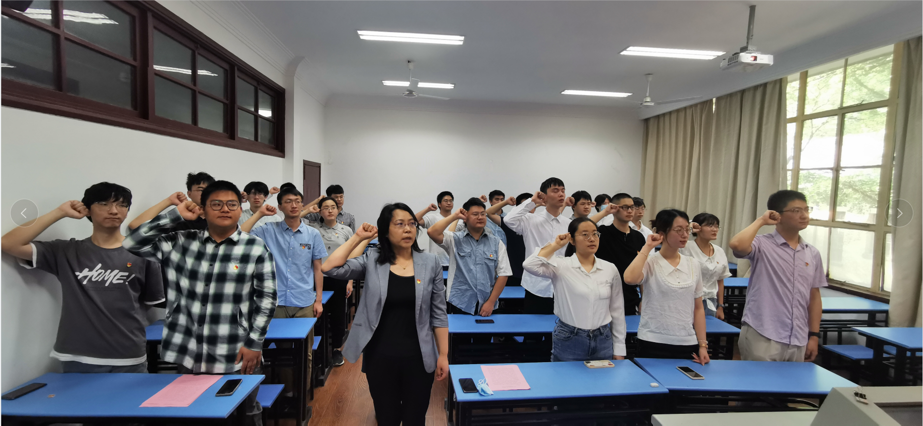 2022年7月1日上午,在庆祝中国共产党101周年华诞之际,williamhill英国官网新党员入党宣誓仪式分别在西康路和江宁校区举行。公司党委书记李英、公司组织员乔雅辉、2018级辅导员李瑶以及40名新党员参加,乔雅辉主持。