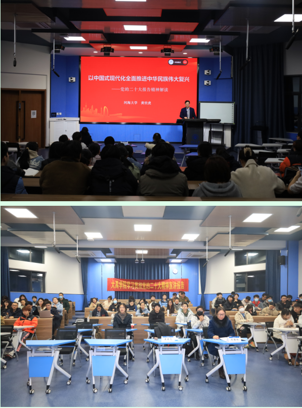 12月9日晚,公司党委在西康路校区科学会堂102教室组织开展了第三场学习党的二十大精神宣讲报告。williamhill马克思主义公司教授、“学习贯彻党的二十大精神 ”宣讲团成员黄世虎老师主讲,组织员乔雅辉主持、2020级全体本科生参加。