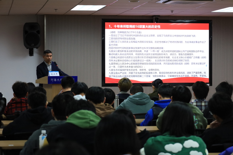 刘兴平书记以“团结奋斗以中国式现代化推进中华民族伟大复兴——学习党的二十大精神”为题,结合习近平总书记在今年全国两会期间的重要讲话精神,从新成就、六个坚持、新使命、新征程四个方面对党的二十大精神作了深入的解读。他指出党的二十大报告是中国共产党团结带领全国各族人民夺取新时代中国特色社会主义新胜利的政治宣言和行动纲领,是一篇马克思主义的纲领性文献,具有极强的政治性、思想性、理论性和指导性。我们学习贯彻党的二十大精神,要全面学习领会其丰富内涵和精神实质,特别要深入领会其核心要义,做到“五个牢牢把握”。寄语大禹学子,作为荣誉公司的员工,要踔厉奋发、勇毅前行,以一往无前的奋斗姿态向第二个百年奋斗目标进军。
